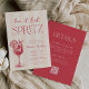 Say cheers to the bride-to-be with this bold and playful “Love at First Spritz” bridal shower invitation from Redwood & Vine Design Co. This double-sided design features a red spritz cocktail graphic on a warm blush backdrop with modern fonts and wave-edged borders for a coastal aperitivo vibe. The back includes editable text fields perfect for adding recipe card requests, registry links, or other custom event info—plus a scannable QR code for effortless guest access. Ideal for summer showers, Italian-inspired celebrations, or modern brides who love a signature drink