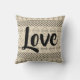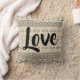 Fun throw pillow. Trendy Aztec geometric Southwestern pattern with the word Love in script. Black print on beige background.
