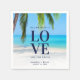 Beach destination wedding napkins that read "All we need is love and the beach". Customised with your names and wedding date.