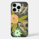 Wildflower bloom colourful botanical Charcoal Love bird and flora iphone phone case. folksy floral pattern,folk art floral pattern,boho bohemian chic floral,elegant flower victorian bloom pattern,whimsical farmhouse garden bloom pattern,mint peach olive fall colours,funky rustic acorn twigs ferns,folksy roses and acorns ferns,