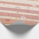 Wrapping paper featuring a striped pattern in warm pink and red hues with singing love birds and hearts. Lovely for Valentine's Day or other romantic occasions.
