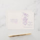 Cute bird couple in line art graphic drawing of open bird cage hanging from a blossoming spring tree with hearts. Fashionable modern chic wedding design part of the the bird cage romantic wedding stationary set. Pretty pastel shades purple and soft pink on a cream background colour. Edit this wedding programme with your own name, dates, ceremony wording, wedding party attendants and thanks . Simple yet elegant program simply replace sample text with your wedding information details and fold programs in half on delivery. Unique drawing and design by Sarah Trett.