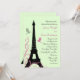 A tall, elegant and stately Eiffel Tower decorates this wedding invitation. The subtle shades of pink and green, and the fancy French script accent the romance of your Parisian themed evening. This invitation is shown on the basic paper; however, I recommend the weight and texture of the linen paper. This Rehearsal Dinner Invitation is part of the full wedding line Love Birds (green); however, if additional items are required just let us know.