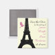 Subtle shades of pink, fancy French script and a beautiful silhouette of the Eiffel Tower accent the romance of your Parisian themed event with this Save the Date. It is part of the full wedding line Love Birds (off white), and also available as a card.