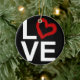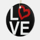 LOVE, Black and White with Red Sketched Heart Ceramic Tree Decoration