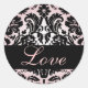 Love Black & Pink Damask Wedding Sticker