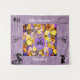 An array of multicolored flowers on display behind a lavender and yellow oval frame that reads 'Love Blooms..Forever. Two small black and white coloured birds at the centre with hearts going up. Text is customisable.
