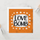"Love Bomb" is a fun text design with a white accent shape surrounded by white whimsical textured dots.