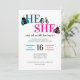 Set against a clean, minimal background, this invitation highlights your party details with easy-to-read, elegant fonts and balanced color accents that reflect the classic gender reveal palette. Perfect for spring gatherings, garden parties, or nature-inspired celebrations, this invitation offers a timeless look while still feeling fun and contemporary.