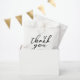 Elegant handwritten script text and brush stroke accents are used to create the pieces of this beautiful, modern wedding suite. The simple, yet striking, favour bag shown here features bold 'Thank You' script text, your message, names and wedding date in black on white. A tiny heart-shaped accent adds a sweet touch. Search ID940 to see other pieces and colour choices for this set.