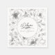 Elegant handwritten script text and brush stroke accents are used to create the pieces of this beautiful, modern wedding suite. The coordinating wedding paper napkin shown here in black on white, also features a hand drawn floral pattern for an eye-catching background. Easily add your own message, names and wedding date using the provided template. Search ID940 to see other pieces and color choices for this set.