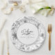 Elegant handwritten script text and brush stroke accents are used to create the pieces of this beautiful, modern wedding suite. The coordinating wedding paper plate shown here also features a hand drawn floral pattern for an eye-catching background. Easily add your own message, names and wedding date using the provided template. Search ID940 to see other pieces and color choices for this set.