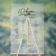 Elegant handwritten script text and brush stroke accents are used to create the pieces of this beautiful, modern wedding suite. The acrylic wedding seating chart shown here also features a large 'Welcome' and an alphabetical list for your guests to find their tables. An optional frosted glass effect background has been provided to highlight your text. Easily add your guest list, names, and wedding date using the provided template. Search ID940 to see other pieces and colour choices for this set.