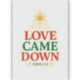 Celebrate the miracle of incarnation with this elegant holiday sticker. Featuring bold red and green serif typography and a radiant golden star, “Love Came Down” is a declaration of divine presence and purpose. Beneath the message, the verse from John 1:14 reads: “The Word became flesh and dwelt among us.”