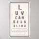 Like an eye chart, this poster states that Love can be so blind and blissful. Don't sweat the small stuff. A fun addition to any room.