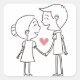 Love Cartoon Bride And Groom Black & White Wedding Square Sticker