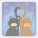 A grey cat and a brown cat snuggle as love and hearts fill the air on this cute sticker!
