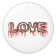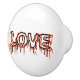 Love. Typography design. Just a single word made with a decorative dripping font. That's the love, full of hopes, tears, bleeding hearts. Apparel and other products for anyone. Ceramic knob.