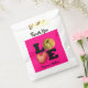 Graphic Art for vegetarian and more with heart potato + apple and large black lettering on pink background (not customisable). Only "Thank You" and names are customisable. You can easily change text (font, colour, size and position) by clicking the customise button. Design on white favour bag. Matching favour box and more... Don't forget the whole collection.
