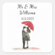 Love couple with red umbrella Wedding Newlyweds Square Sticker