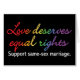 A pro gay marriage rights design, the rainbow coloured text reads "love deserves equal rights, support same-sex marriage".