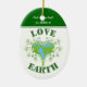 Earth Day custom ornament featuring the planet earth in a heart and swirls.