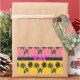 Flowers: Stylised flowers with simple shapes and bold colours are repeated across each band, creating a rhythm that ties the piece together.