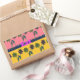 Pink: Dominates the top band and the flowers, adding a warm and playful vibe.
