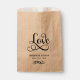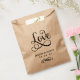 Wedding favour bags feature a Love black coloured decorative script design with custom monogram that includes the bride and groom names and wedding date.