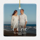 Add your wedding or family photos on front and back, double 2 sided ornament... Stylish Loose and casual script typography, your names and year or other text. Modern, simple casual elegant script writing. Celebrate your first year married or just an anniversary of love and committment with this beautiful keepsake ornament. Upload your photo to create a full-bleed holiday Christmas ornament, a wonderful gift idea yourselves, parents, grandma, relatives or other family and friends. Automatically shades the perfect areas of the pic.
