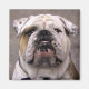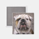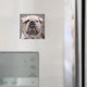 This fun canine magnet features a portrait of a beautiful English Bulldog pup highlighted with a grey background.