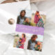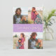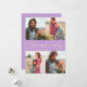 Modern and elegant Valentine's Day photo template card featuring 4 pictures with a hand written script text that says "Love makes a family" with hearts. You can add another picture and a message on the back of the card. Lemon wisteria.