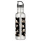 Hand-drawn ferrets, xoxo and hearts pattern water bottle, black background.