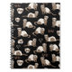 Hand-drawn ferrets, xoxo and hearts pattern notebook, black background.