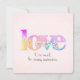 Gradient rainbow floral font on soft blush pink textured background for vow renewal invite.