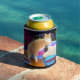 Original fine art design of happy cats sleeping in freshly folded laundry by artist Carolyn McFann of Two Purring Cats Studio printed on a quality beverage can cooler for cat fans.