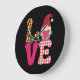 Love Gnome Valentines Day Red Buffalo Plaid Leopar Large Clock