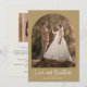 Elegant arch photo gold wedding thank you cards in a "Love and gratitude" design - in green. Customise front with photo and your names and add a personal message to the back, along with a second favourite wedding day photo.
