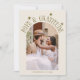 Simple and minimalistic wedding thank you card featuring your wedding photo with an arch frame with texts around that says "love & gratitude" and the couple's names and the wedding date. Message on the back of the card is editable and another picture can be added as well. This 2-sided thank you card is so timelessly stylish. The background is cream.