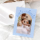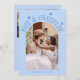 Simple and minimalistic wedding thank you card featuring your wedding photo with an arch frame with texts around that says "love & gratitude" and the couple's names and the wedding date. Message on the back of the card is editable and another picture can be added as well. This 2-sided thank you card is so timelessly stylish. The background is icy blue.