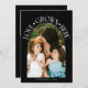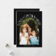 Modern and elegant Valentine's Day photo template card featuring an arch framed photo with a text around it that says "Love Grows Here" with hearts. You can add another picture and a message on the back of the card. Black.