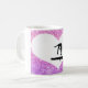 Girl gymnast flipping on balance beam in centre of glittery heart. Beautiful mug!