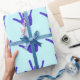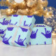 Painting of a hand in blue, showing the sign language for love, is tiled on wrapping paper. The background colour of light blue can be customised.