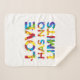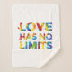 This design features the phrase "Love Has No Limits" formed in colorful rainbow colors.