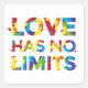 This design features the phrase "Love Has No Limits" formed in colourful rainbow colours.