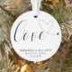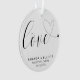 Did you get married this year? Add a memory to your tree with this keepsake acrylic ornament. This ornament features the word, "love" in black calligraphy with a heart swash at the end, over a white background. Below are your names, location and date. This ornament is also great as a wedding favour for your guests or a great gift to a newlywed couple for their first Christmas.