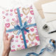 Love heart doughnuts sweet pastry pink valentine wrapping paper