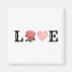 Love heart and pink rose flower on white background Square Magnet. Modern way of expressing love!