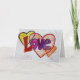 The word "Love" painted in red, pink, & purple against yellow, pink, and orange hearts. The hearts intersect and mix colours on overlap like the many aspects of love in our loves. This painting also comes in a version without glitter. Personalise this love word art greeting card with your own text and images using the "Customise It" button.