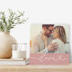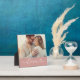 A romantic dusty rose plaque sign featuring "Love" in delicate white calligraphy script with a heart flourish, layered over a single custom photo. The soft rose pink colour band adds a feminine, romantic accent beneath the image. The photo is fully customisable — a gorgeous keepsake for couples, an anniversary gift, or a Valentine's Day display.